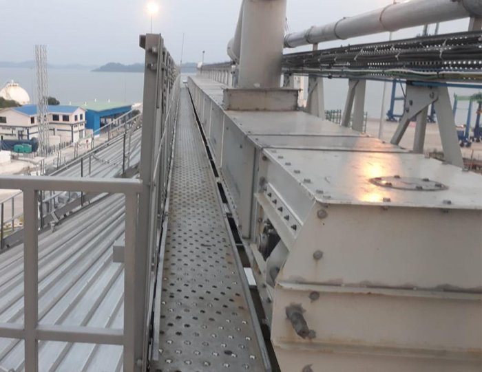 Inspection: Bali Group Conveyor hinged inspection door provides quick access for observing operation. This access is screened for safety, and when closed is dust and weather tight.